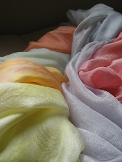 We've been doing a lot of natural dyeing here at Gosh Yarn It! We run a couple of neat Etsy shops where we sell our own handmade products. We love to dye silk, yarn and other materials with natural dyes. Here are some of the beautiful items we've created recently. We love to do custom orders! If interested in custom dyeing, email us at info@goshyarnit.com or send us a convo through our Etsy shop, www.syrendell.etsy.com.